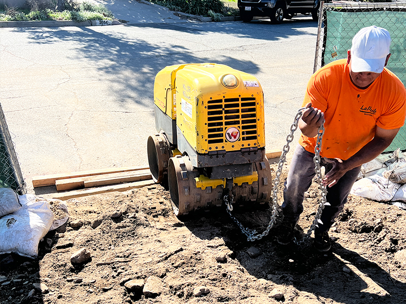 While much of the world slowed to a halt in the first few months of the pandemic, that was not the case for us in the construction industry. In fact, several of our clients contacted us in the few first days of the initial lockdown to make sure we would still be committed to their projects – which we were 100%. Here Sean is backing a skid steer into down a tight driveway for a house addition in Burbank, and our crew is working on a new monument sign on one of our multifamily renovations.